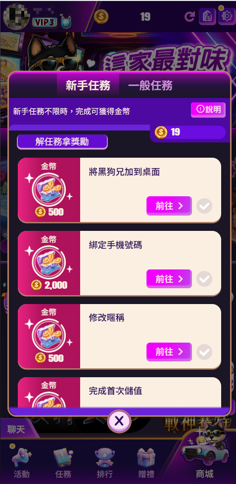 剛完成註冊,最重要的當然是體驗金了!新玩家總共有 6,000 以上的免費金幣 可以領取,而且完全不用儲值!