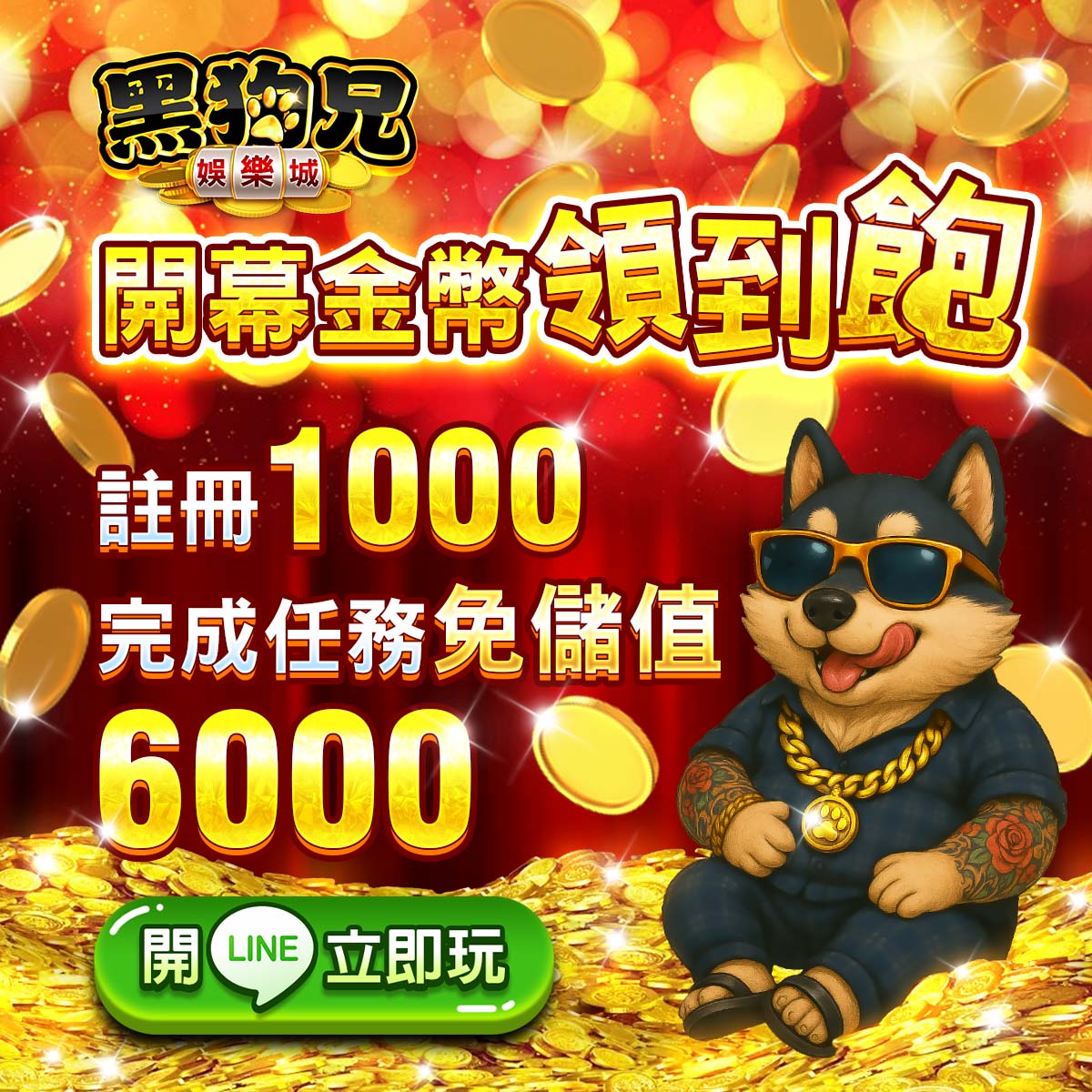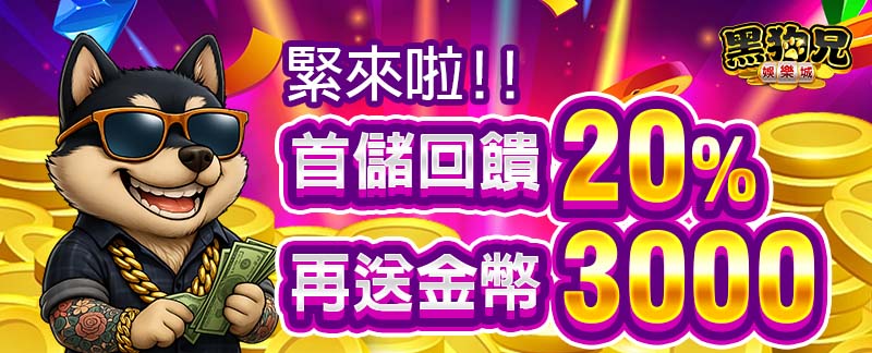 首次在黑狗兄LINE娛樂城儲值即可享 回饋 20% 金幣 + 3,000 金幣 雙重好康!