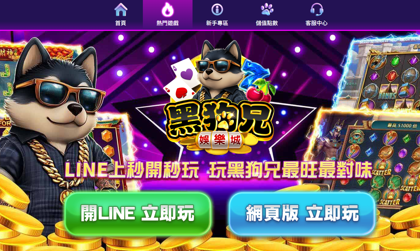 如果是使用電腦的玩家,也可以前往 黑狗兄官網,點選【網頁版 立即玩】或【開LINE 立即玩】,接著用 LINE 掃描 QR